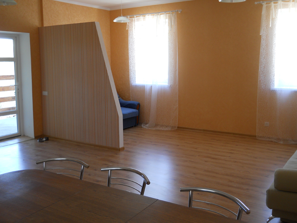 гостиная, туалет с душевой. На втором этаже 2 спальни, туалет,